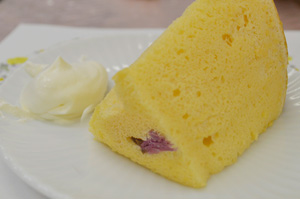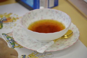 可愛らしいティーカップに良い香りの紅茶を注いで、春を告げる桜のシフォンケーキと共にいただきました。