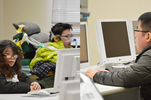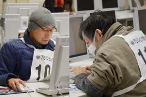 今年はワード・プロセッサ部門に7人が出場。緊張した面持ちの出場者達をスタッフが見守りつつ、皆精いっぱいの力を出し切りました。結果1名の方が努力賞を受賞。