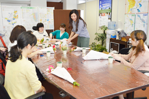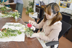 アイコラボの女子メンバーだけで構成されている「美会」を開催。第21回目の美会は、フラワーショップから講師を招いてフラワーアレンジメントレッスンを行いました。