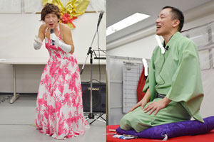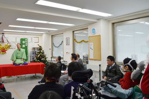今年は人気の奈良交通お笑い演芸同好会の皆さんに来ていただき、楽しい演芸や歌が続き、トリは落語で締めくくられて、くろうとはだしの芸の数々に、利用者様達も拍手喝采。