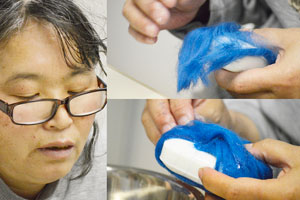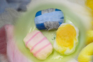 フェルトソープの作り方は、固形石鹸に羊毛フェルトを巻き付けるだけ。
