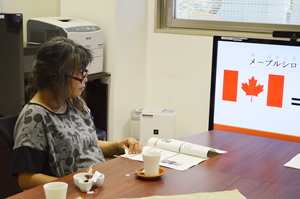 まだ残暑も残る初秋の第37回目の美会は、京田辺市役所の京田辺市国際交流員のホーイーチンさん(メリーさん)をお招きし、外国の文化や、様々なことをプレゼンテーション方式で、説明していただきました。紅茶を飲みながら、優雅な空間で会は進み、台湾系カナダ人の方なので、カナダや、台湾、その方自身の事を、何でも聞いて下さいね、とご提示頂いたところ、利用者様やスタッフ達から質問がどんどん出てきて、それに楽しく、きさくにお答え下さいました。